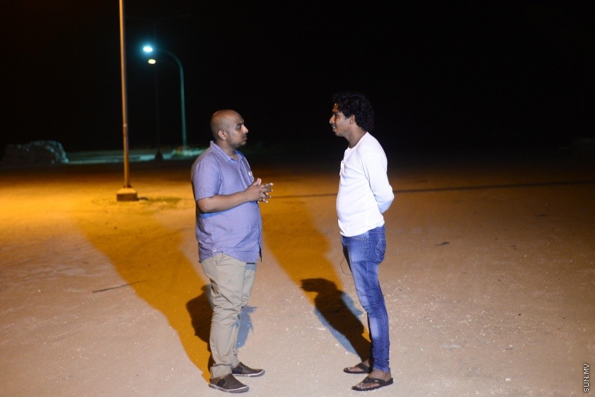 ލޯޗު ދަތުރުކޮށްދޭ ފުއާދު ގާސިމް، (ކ) ސަންގެ ހާއްސަ ކަވަރޭޖުގައި އިހަވަންދުއަށް ދިޔަ ނޫސްވެރިޔާއާ (ވ) ވާހަކަ ދައްކަނީ --- ސަން ފޮޓޯ/ މުހައްމަދު އަފްރާހު