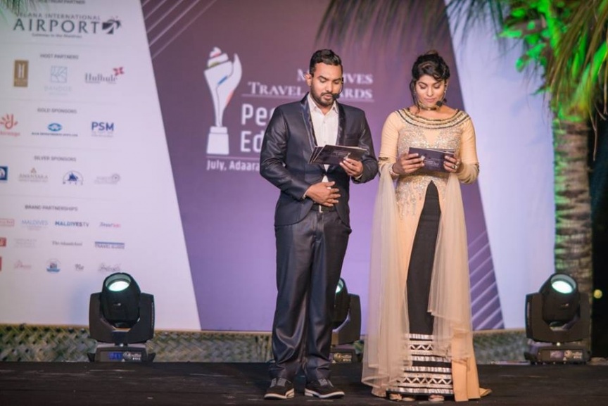 މޯލްޑިވްސް ޓްރެވަލް އެވޯޑްސް ޕީޕަލްސް އެޑިޝަންގެ ދެ ހޯސްޓުން އަސްރާ ނަސީމް އަދި މޫސާ ވަސީމް --- ފޮޓޯ/ އައްސަދު ފޮޓޯގްރަފީއިނގިރޭސިބަހުން ކުރިޔަށް ގެންދިޔަ މަޓާޓޯ މޯލްޑިވްސް ޓްރެވަލް އެވޯޑްސްއަކީ އަސޫއާއި މޫސައަށް ވެސް ވަރަށް އާ ތަޖުރިބާއެކެވެ. މޯލްޑިވިއަން އައިޑަލްގެ ދެ ސީޒަންވެސް ހޯސްޓުކުރި މޫސާ ވަސީމަކީ އާންމު ގޮތެއްގައި އިނގިރޭސިބަހުން ޝޯ ޕްރެޒެންޓުކުރާ މީހެެއް ނޫނެވެ. އަދި އަސޫއަކީ މީގެ ކުރިން މިފަދަ އެއްވެސް ޕްލެޓްފޯމަކުން ފެނިފައިވާ މޫނެއް ނޫނެވެ.