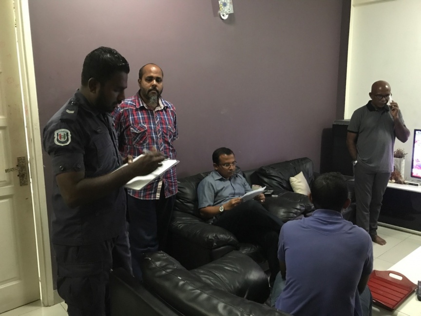 އަބްދުﷲ ރިޔާޒުގެ ހާޒިރުގައި އޭނާގެ އެޕާޓްމަންޓް ފުލުހުން ބަލައިފާސްކުރަން އެ ގޭގައި-- ފޮޓޯ/ ޓްވިޓާ