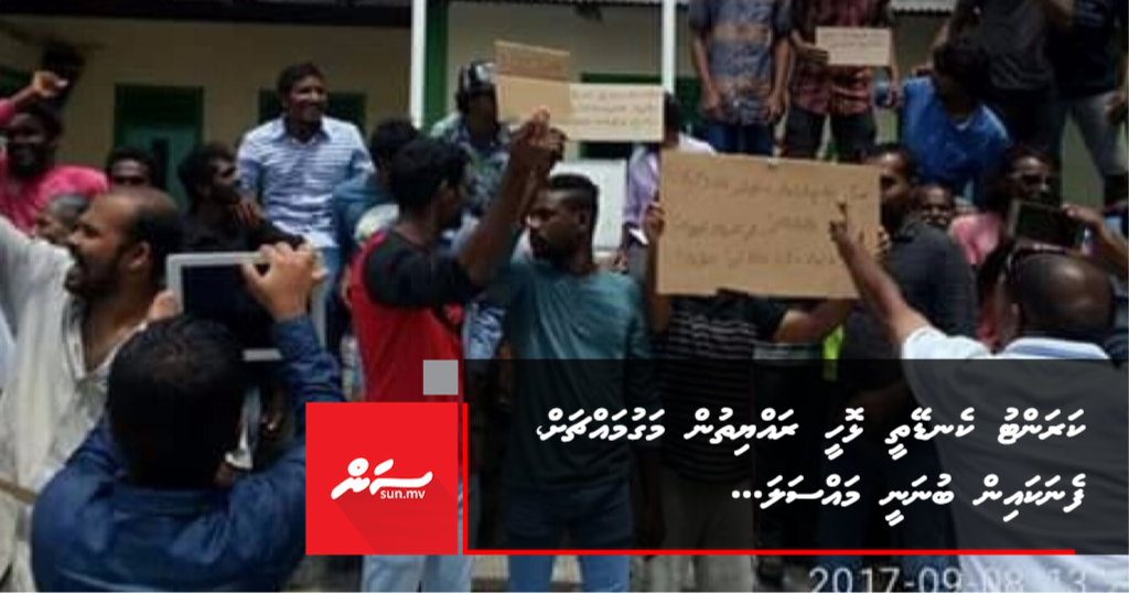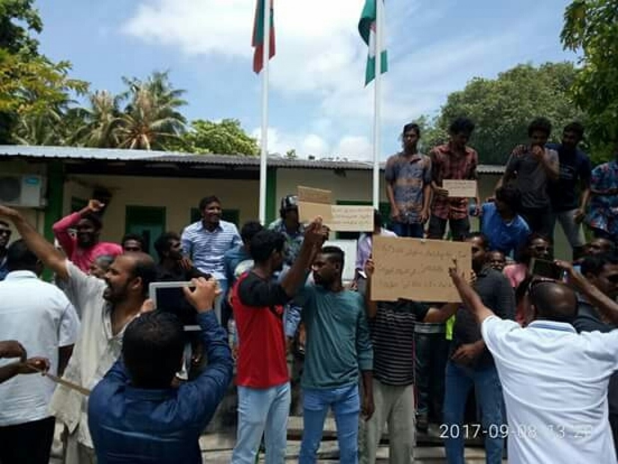 ޅޮހީ ރައްޔިތުން އެރަށު އިންޖީނުގެ ކައިރީގައި އިހްތިޖާޖް ކުރަނީ--ފޮޓޯ/ ޅޮހީ ކައުންސިލް