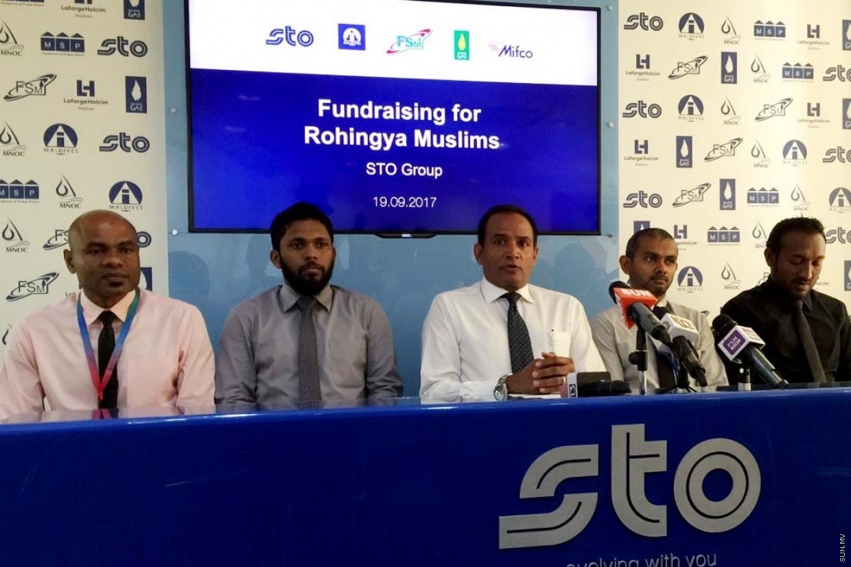 ރޮހިންގާ މުސްލިމުންނަށް އެހީތެރިވުމަށް އެސްޓީއޯ ގްރޫޕުން ފައިސާ އެއްކުރުމުގެ ހަރަކާތެއް ފެށިކަން އިއުލާނުކުރުމަށް ބޭއްވި ބައްދަލުވުމުގައި އެ ގްރޫޕުގެ އިސްވެރީން ބައިވެރިވެ ވަޑައިގަތެވެ. އޭގެ ތެރޭގައި އެލައިޑް އިންޝުއަރަންސް، ފިއުލްސަޕްލައި މޯލްޑިވްސް، މޯލްޑިވްގޭސް އަދި މިފްކޯ ހިމެނެ އެވެ.