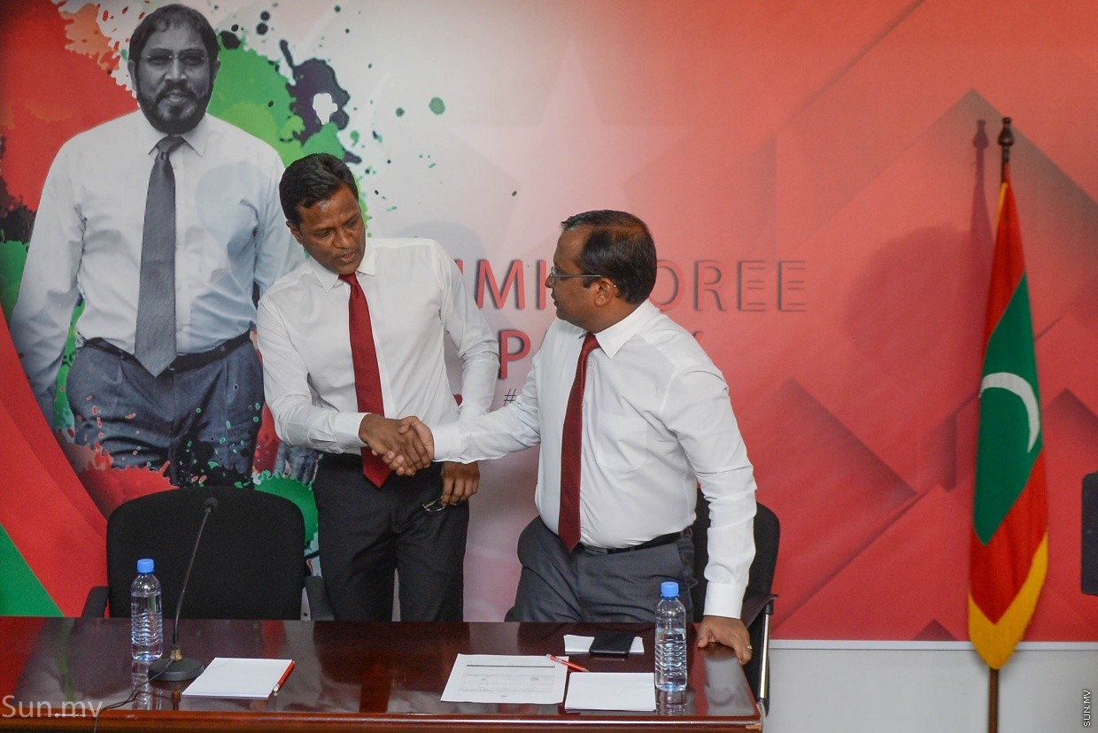 އުމަރު ސޮއިކުރެއްވުމަށް ބޭއްވި ރަސްމިއްޔާތުގައި އެ ޕާޓިގެ މަޖިލިސް މެމްބަރުންގެ ތެރޭން ބައިވެރިވީ ދެ މެމްބަރުންނެވެ. އެއީ ޕާޓީގެ ޑެޕިއުޓީ ލީޑަރު އަދި ކިނބުދޫ ދާއިރާގެ މެމްބަރު އަބްދުﷲ ރިޔާޒާއި ކެޔޮދޫ ދާއިރާގެ މެމްބަރު މޫސާ ނިޒާރު އެވެ.