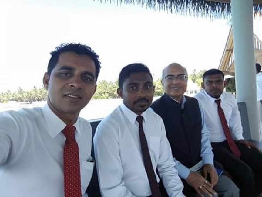 އިންޑިއާ ސަފީރު އަކިލޭޝް މިޝްރާ، ގއ. އަތޮޅު ކައުންސިލްގެ މެންބަރުންނާ އެކު ފޮޓޯއަކަށް ހުއްޓިވަޑައިގެން -- ސަން ފޮޓޯ: ކިޔުންތެރިއެއް