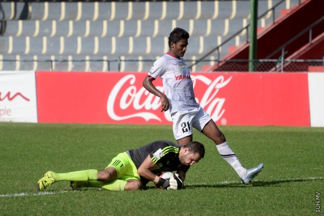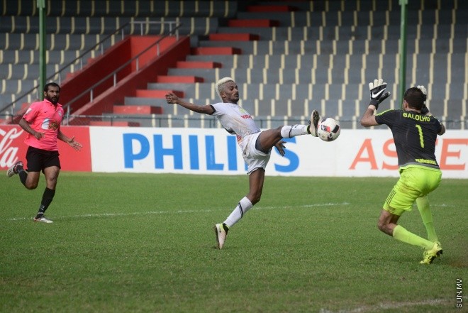 ދިވެހި ޕްރިމިއާ ލީގު 2016ގައި ޔޫވީ އާއީ ޓިސީ ބައްދަލުކުރި މެޗެއްގެ ތެރެއިން ނާއިޒް ފޮނުވާލި ހަމަލާއެއް މަހުމޫދު ދިފާއުކުރަނީ --- ސަން ފައިލް ފޮޓޯ/ މުހައްމަދު އަފްރާހް