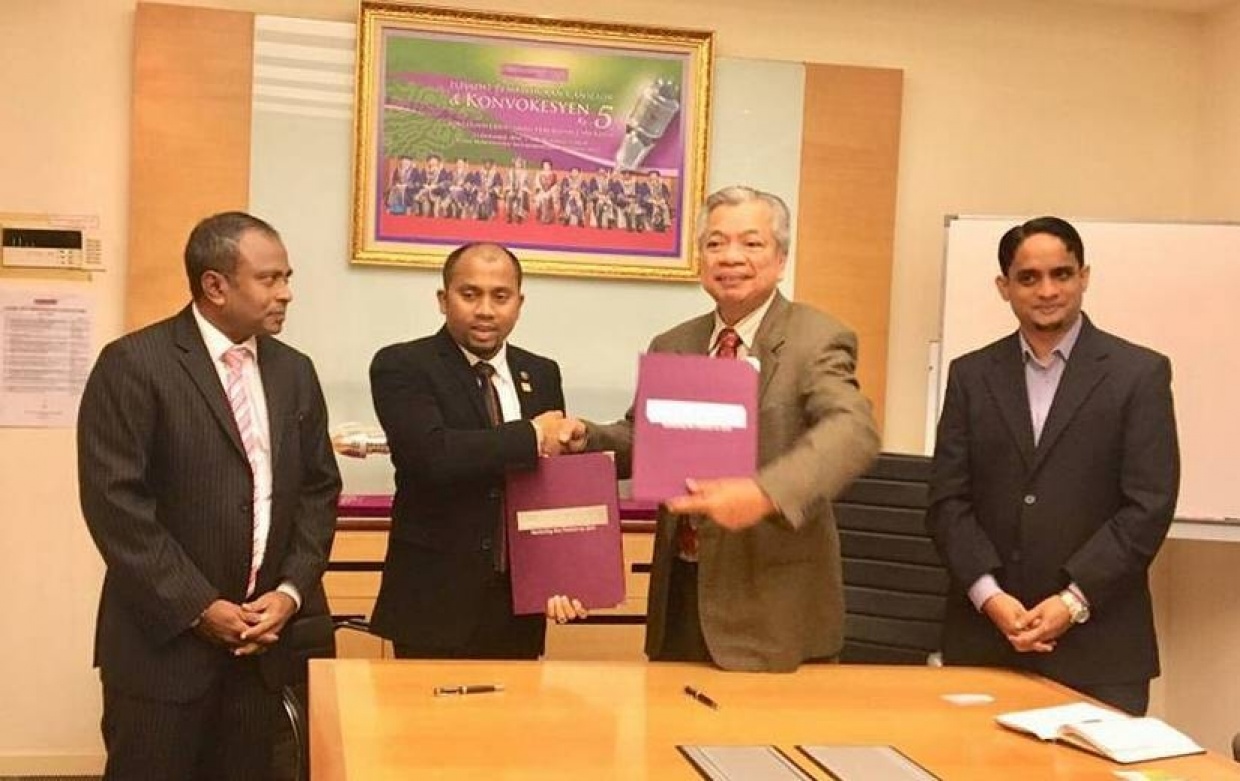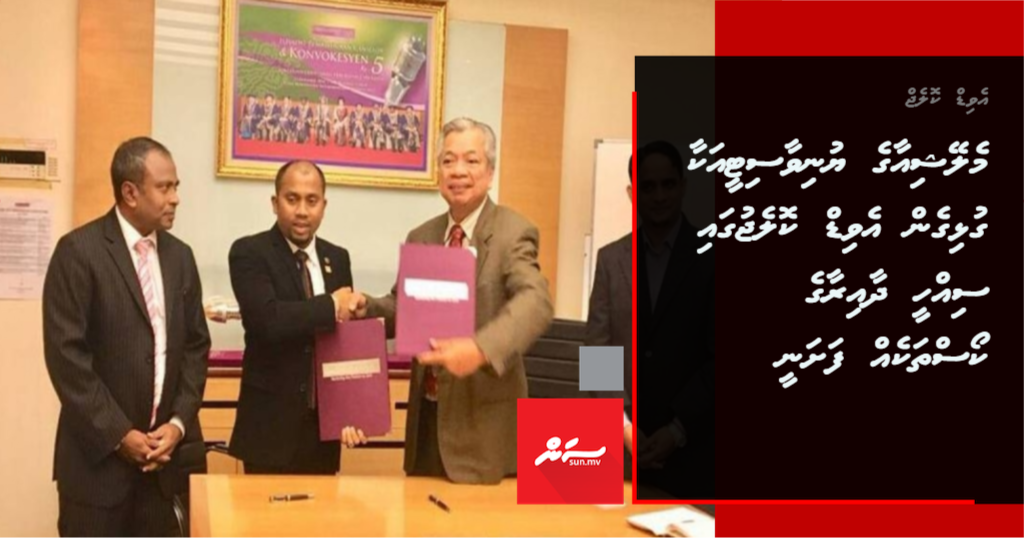 ސީޔޫސީއެމްއެސްގައި މިއަދު ބޭއްވި ރަސްމިއްޔާތެއްގައި އެވިޑް ކޮލެޖުގެ ފަރާތުން ސޮއިކުރެއްވީ އެ ކޮލެޖުގެ ޗެއާމަން އަބްދުﷲ މުސްތާގު ރަޝާދެވެ. ސައިބަޖަޔާ ޔުނިވާސިޓީ ކޮލެޖުގެ ފަރާތުން ސޮއިކުރެއްވީ ޔުނިވާސިޓީގެ ޗާންސެލަރެވެ.