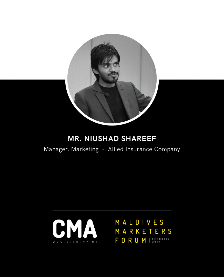 - އެލައިޑް އިންޝުއަރެންސްގެ މާކެޓިން މެނޭޖަރު، ނިއުޝާދު ޝަރީފް: ނިއުޝާދަކީ އެލައިޑް އިންޝުއަރެންސް ކުންފުނީގެ މާކެޓިން އެންޑް ޕަބްލިކް ރިލޭޝަންގެ ހުރިހާ ކަމެއް ބެލެހެއްޓުމުގައި ހަރަކާތްތެރިވާ ބޭފުޅެކެވެ. އޭގެ އިތުރުން ވެސް ތިންކް މޯލްޑިވްސްގެ ސީނިއާ މެނޭޖާގެ ހައިސިއްޔަތުން، ނިއުޝާދަކީ ބްރޭންޑް ޕްލޭނިން އަދި މާކެޓިން ކެންޕޭންތައްް ހިންގުމުގައި ހަރަކާތްތެރިވާ ބޭފުޅެކެވެ.