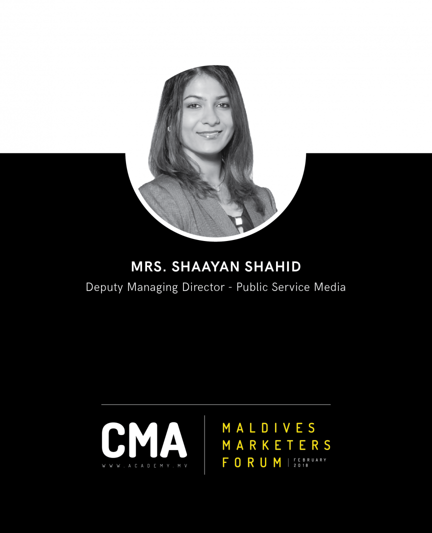 - ޕަބްލިކް ސާވިސް މީޑިއާގެ ޑެޕިއުޓީ މެނޭޖިން ޑިރެކްޓަރު، އައިމިނަތު ޝާޔަން ޝާހިދު: ޝާޔާން އަކީ ޕީއެސްއެމްގެ ދަށުން ޓީވީ، ރޭޑިއޯ، އޮންލައިން، ޕްރިންޓް މީޑިއާ ވެސް ހިންގުމުގައި ހަރަކާތްތެރިވާ މީޑިއާގައި މަސައްކަތް ކުރާ މީހުން އުފެއްދުމުގައި ވެސް މަސައްކަތް ކުރައްވާ ބޭފުޅެކެވެ.