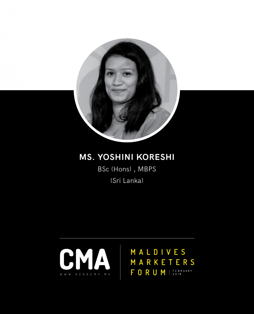 - ކޮލޮމްބޯ އިންސްޓިޓިއުޓް އޮފް ރިސާޗް އެންޑް ސައިކޮލޮޖީގެ ފަރާތުން، ޔޮޝިނީ ކޮރޭޝި: ޔޮޝިނީ ކޮރޭޝިއަކީ ސްރީލަންކާގެ ސައިކޮލޮޖީގެ ދާއިރާގައި އެންމެ ތަޖުރިބާކާރު އެންމެ ފުންނާބު އުސް އެއް އެއް ބޭފުޅާ އެވެ. އަދި ބިޒްނަސް ސައިކޮލޮޖީގެ މުހިއްމުކަމާ މެދު ވިޔަފާރިތައް ހޭލުންތެރި ކުރުވުމުގައި ހަރަކާތްތެރިވާ މަދު މީހުންގެ ތެރޭގައި ޔޮޝިނީ ހިމެނެ އެވެ.