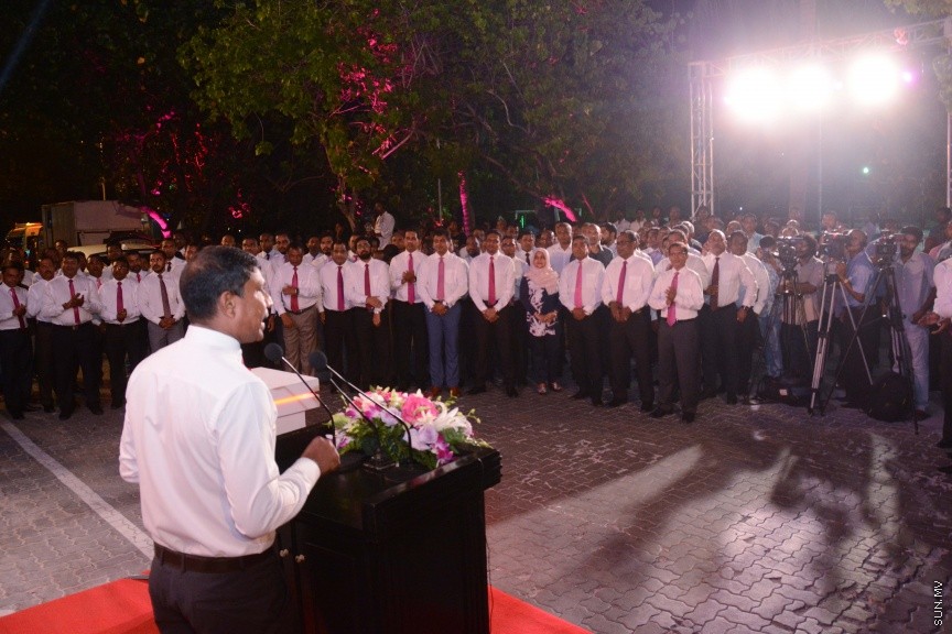 ފެބްރުއަރީ 9، 2017: ޕީޕީއެމްގެ އާ އޮފީސް ހުޅުވުމަށް ހ. ހުރަފައިގައި ބޭއްވި ހާއްސަ ރަސްމިއްޔާތުގެ ތެރެއިން -- ސަން ފޮޓޯ/ ފަޔާޒު މޫސާ