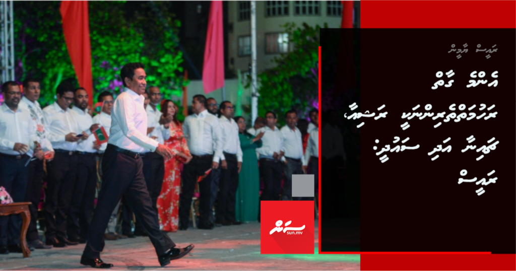 "މިއަދު މިދެންނެވި ގޮތަށް ނިންމެވުމުގައި އަޅުގަނޑުމެންނަށް އެންމެ ވަރުގަދައަށް މަސައްކަތްކޮށްދެއްވީ އެންމެ ގާތް ރަހުމަތްތެރިން. ރަޝިއާ އާއި ޗައިނާ އައި ސައުދީ އަރަބިއްޔާ އެންމެ ވަރުގަދައަށް މަސައްކަތް ކޮށްދެއްވީ،" ޕީޕީއެމުން ކާނިވާ ސަރަހައްދުގައި މިރޭ ބޭއްވި ޖަލްސާގައި ވާހަކަފުޅުދައްކަވަމުން ރައީސް ވިދާޅުވި އެވެ.