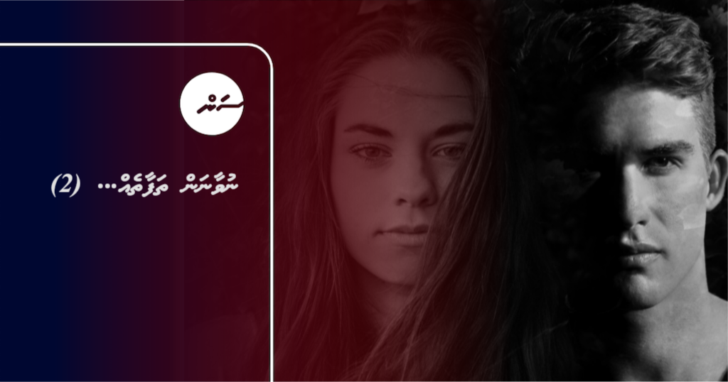 ''މިކަމަށް ޖަމީލާ ވާނެ އަވަސް ހައްލެއް ހޯދަން، މަ ބޭނުން ވީހާވެސް އަވަހަކަށް މަލްސާއާއި ކައިވެނި ކުރަން...'' އެޕާރޓެމެންޓުން ނިކުންނަމުން ޝުއައިބު އެދުނެވެ. ވަގުތުން ޖަމީލާ ބޯޖަހާލިއެވެ. ބުރަހެލިކަމާއެކު ސިޑިންފައިބަމުން ދިޔަ ޝުއައިބުއަށް ބަލަން ޖަމީލާ ދޮރުކުރިމަތީ މަތީ ހުއްޓެވެ.