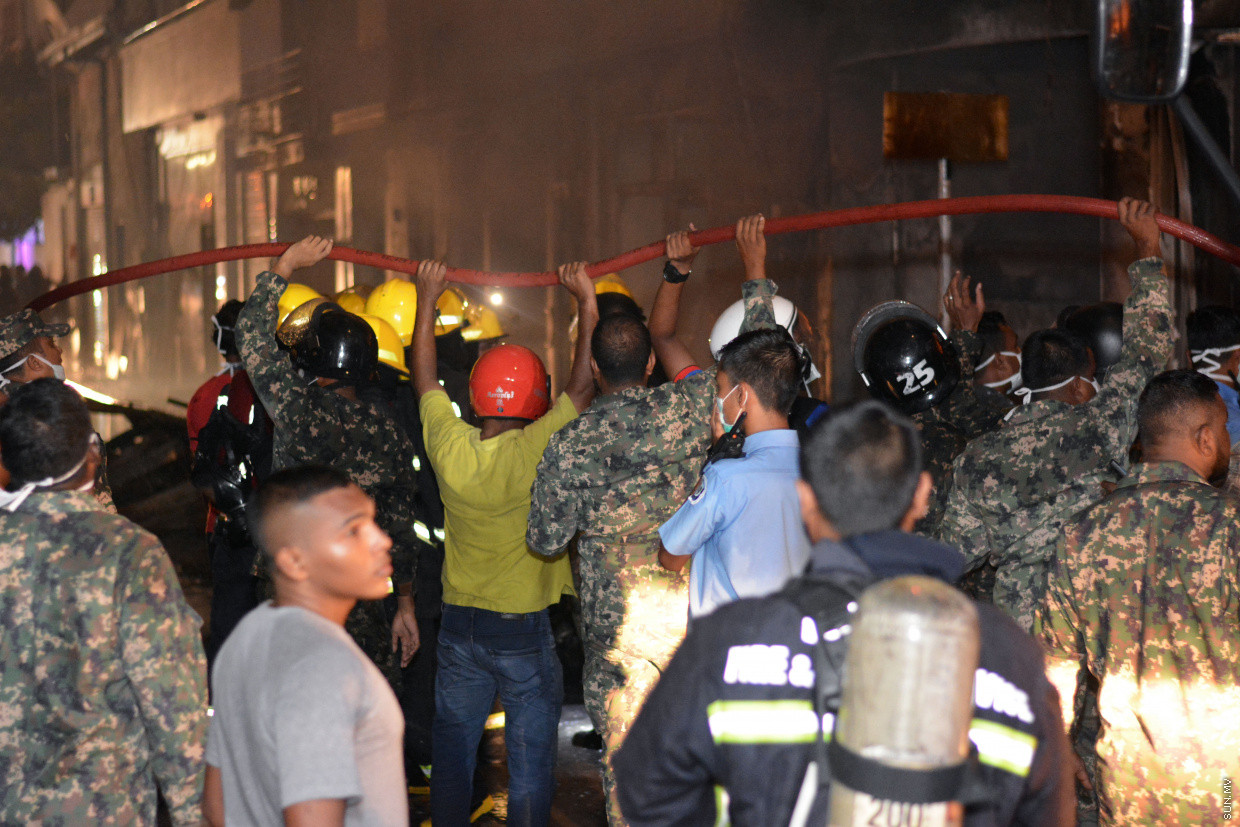 އަލިފާންގަނޑު ކޮންޓްރޯލު ކުރަން ފަޔާ ލޮރީތައް ވައްދަން ޖެހުނީ ހަނި ގޯޅިތަކަށެވެ. އެ ގޯޅިތަކުގައި ސައިކަލުތައް ޕާކްކޮށްފައި ހުރި ގޮތުން ލޮރީތައް ވައްދަން ލަސްވި ކަމަށް އެމްއެންޑީއެފްއިން ބުންޏެވެ. އެ ސައިކަލުތައް އެހެން ސަރަހައްދުތަކަށް ބަދަލު ކުރުމުގެ މަސައްކަތް ސިފައިންނާއި ފުލުހުން ކުރަމުން ފެށުމުން، ދަރުމަވެރިންވެސް އެކަމުގައި ބައިވެރިވެ ފަޔާ ލޮރީތަކަށް ވަދެވޭނެ ޖާގަ ހެދި އެވެ. ބޮޑެތި ކާރުތައް ފަދަ ވެހިކަލްތައްވެސް ނެރުމުގައި ސިފައިންނާއި ފުލުހުންނާއި އާންމު ރައްޔިތުން ގުޅިގެން މަސައްކަތް ކުރި އެވެ.