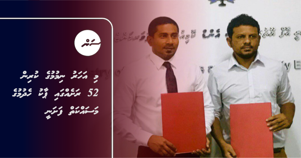 އިއްޔެ ވެވުނު އެއްބަސްވުމުގައި ބްރިލިއަންޓް ކޮމްޕެނީގެ ފަރާތުން ސޮއެ ކުރެއްވީ އެ ކޮމްޕެނީގެ މެނޭޖިންގް ޑިރެކްޓަރު އިސްމާއިލް މަސްއޫދު އެވެ. މިނިސްޓްރީގެ ފަރާތުން މަހްލޫފް ސޮއެ ކުރެެއްވި އިރު މިއީ 1.29 މިލިއަން ރުފިޔާގެ ޕްރޮޖެކްޓެކެވެ. މި އެއްބަސްވުމުގެ ދަށުން 55 ދުވަސް ތެރޭގައި ހަވާލުކުރެވިފައިވާ މަސައްކަތް ނިންމަން ޖެހޭނެ އެވެ.