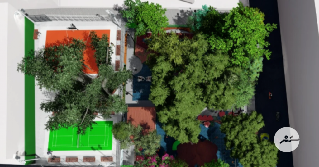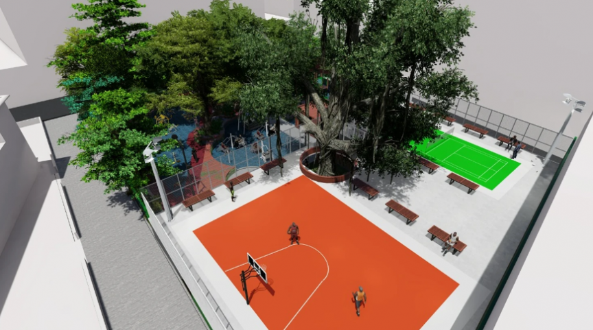 އެ ޕާކުގެ ސްޕޯޓްސް އޭރިޔާގައި ބެޑްމިންޓަން ކޯޓްއަކާއި ތްރީ އޮން ތްރީ ބާސްކެޓްބޯޅަ ކުޅޭނެ ކޯޓެއް ހުންނާނެ--- ފޮޓޯ/ ސިޓީ ކައުންސިލް