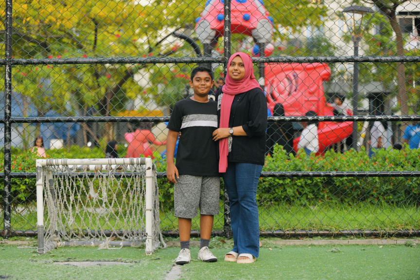 މިޝްއާލް މަންމައާއެކު --- ސަން ފޮޓޯ/ މުހައްމަދު ނާއިލް ހުސައިން
