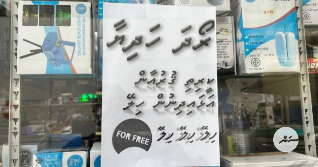 ފެބް ފިހާރައިން އިލެކްޓްރޯނިކް ޑިވައިސްތަކަށް ހިލޭ ކީރިތި ޤުރުއާން އަޅައިދޭ ކަމަށް އެ ފިހާރައިގެ ބޭރުގައި އިޝްތިހާރު ކޮށްފައި ހުއްޓެވެ. އެކަމާ ޝައުގުވެރިކަން އުފެދި، ފިހާރައިގެ ވެރިމީހާއަށް ގުޅާލާ ވާހަކަ ދައްކާލީމެވެ.