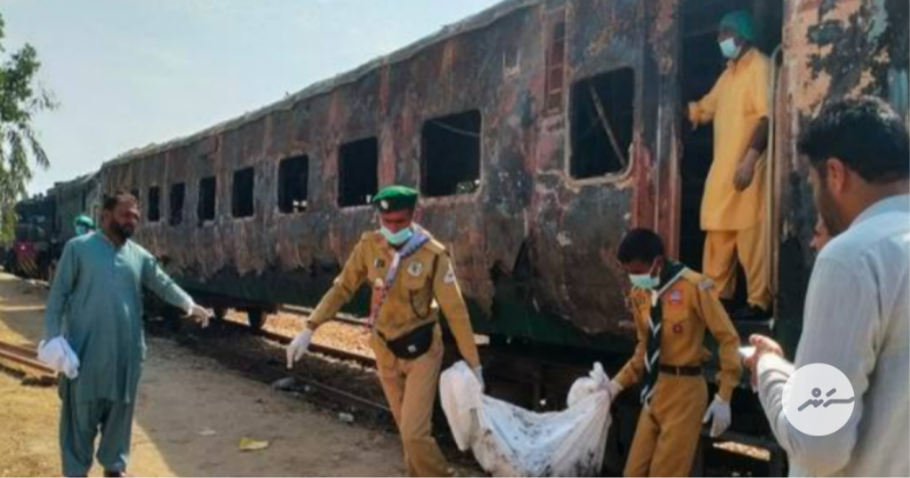 ޕާކިސްތާނުގެ ދެކުނުގައި ފަސިންޖަރުންނާ އެކު ދަތުރުކުރަމުން ދިޔަ ރޭލެއްގައި އަލިފާން ރޯވެ ހަތް މީހަކު މަރުވެއްޖެއެވެ.