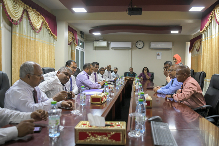 ޕީއެންއެފް އުފެއްދުމުގައި އިސްކޮށް އުޅުއްވާ ބޭފުޅުން އިލެކްޝަންސް ކޮމިޝަނުގެ މެންބަރުންނާ އެކު -- ސަން ފޮޓޯ: އިންފިނިޓް މުމަންޓްސް/ މުހައްމަދު ޝާތިއު އަބްދުﷲ