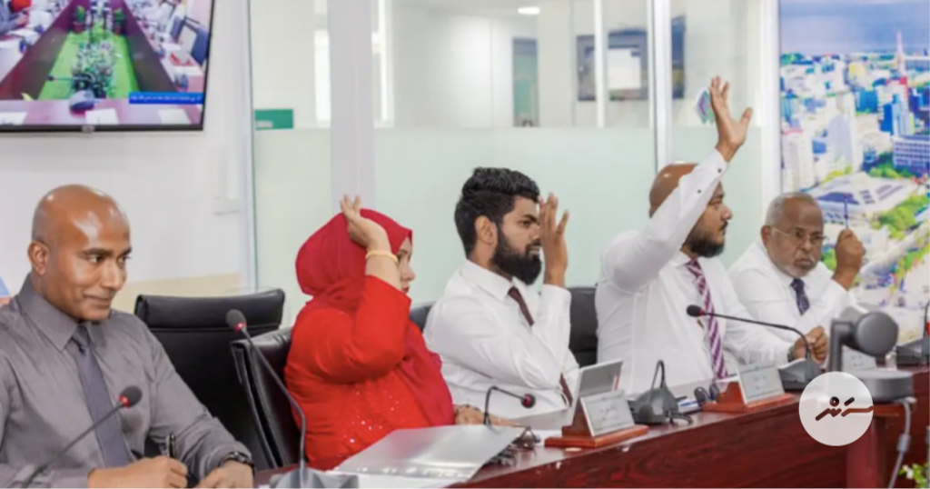 އެ ހުށަހެޅުން އޮތް ގޮތަށް ފާސްކުރަން ހުޅުމާލޭ ދާއިރާގެ ކައުންސިލަރު އިބްރާހިމް ޝުޖާއު ވަނީ ހުށަހަޅުއްވައިފައެވެ. ސަރުކާރަށް މެޖޯރިޓީ އޮތް ކައުންސިލުން ވަނީ އެ ހުށަހެޅުން އޮތް ގޮތަށް ފާސްކޮށްފައެވެ. ބައްދަލުވުމުގައި ބައިވެރިވި 11 ކައުންސިލަރުންގެ ތެރެއިން 10 ކައުންސިލަރުން ވަނީ އެ ކަމަށް ތާއީދުކުރައްވައިފައެވެ. އެއް ކައުންސިލަރު ވަކި ގޮތަކަށް ވޯޓެއް ނުދެއްވައެވެ.