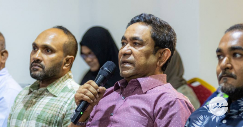 "މިހާރު ކޮން ދުވަހެއްތޯ އެ މީހުން ވާނުވާގައި އުޅޭތާ. އެހެންމާ އެންމެނަށް ވެސް އިނގޭ މިއީ ކުޅޭ ޗަރުކޭހެއްކަން. މި ކުރަން އުޅޭ ކަމަކީ [ރައީސް ޑރ. މުޙައްމަދު މުއިއްޒު] މުއިއްޒަށް އެނގޭ މި ދުސްތޫރީ މައްސަލަ ނިމޭނީ މުއިއްޒާ ދެކޮޅަށްކަން... އެއީ ހުރިހާ ވެސް މައްސަލައަކީ،" ޔާމީން ވިދާޅުވިއެވެ.
