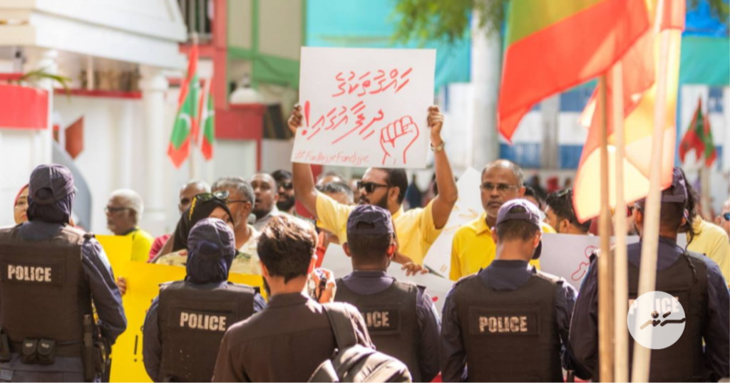 ޔުމްނުގެ ދިފާއުގައި ޒުވާނުން ކުރި މުޒާހަރާއެއްގެ ތެރެއިން --- ސަން ފޮޓޯ/ މޫސާ ނަދީމް