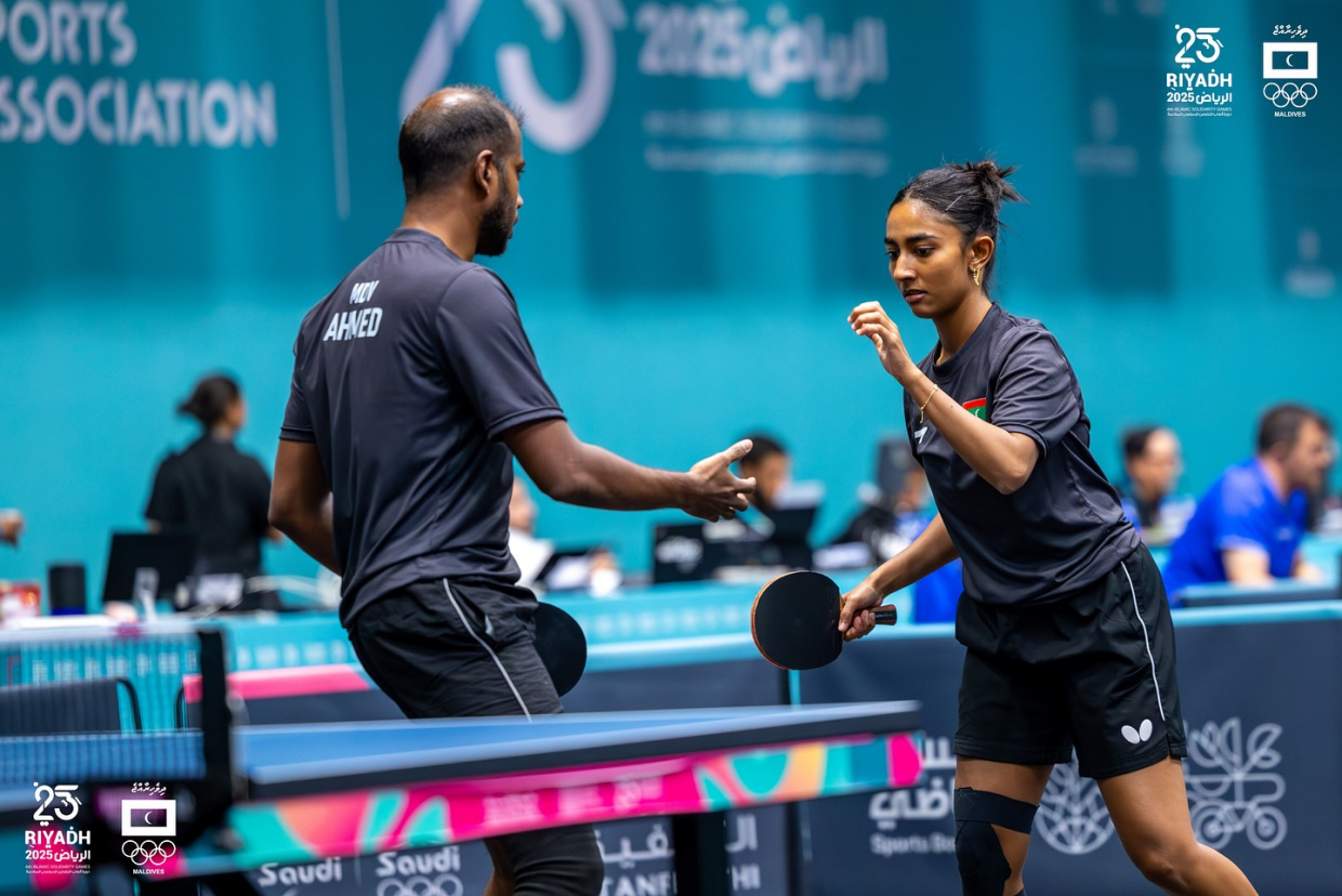 ސަޢުދީ ޢަރަބިއްޔާގައި ކުރިއަށްދާ ހަވަނަ އިސްލާމިކް ސޮލިޑާރިޓީ ގޭމްސްގެ ޓޭބަލް ޓެނިސް މިކްސް ޑަބަލްސް އިވެންޓުގައި ރާއްޖޭގެ އައިޝަތު ރަފާ ނާޒިމް އާއި މޫސާ މުންސިފްގެ މައްޗަށް ބަންގްލަދޭޝްގެ އެމްޑީ ޖާވިދު އަދި ސައި މަރުމާ ކުރި ހޯދައިފިއެވެ.