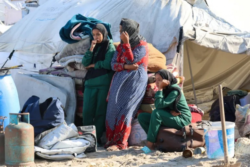 ޣައްޒާގެ ވަގުތީ ހިޔާއެއް ކައިރީގައި ބަޔަކު މަޑުކޮށްލައިގެން. ފިނި މޫސުމުގެ ސަބަބުން ހިޔާތަކުގައި ދިރިއުޅެން ވަނީ އުދަގޫވެފައި. ފޮޓޯ/ރޮއިޓާސް