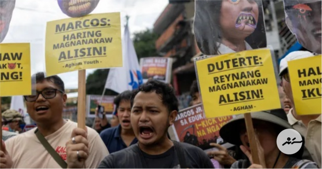 ފިލިޕީންސްގެ ފެންބޮޑުވުން ހައްލު ކުރުމަށް ހިންގި ބިލިއަން ޑޮލަރުގެ ފްލަޑް އިންފްރާސްޓްރަކްޗާ މަޝްރޫއުތަކުގައި ސަރުކާރަށް ކޮރަޕްޝަންގެ ތުހުމަތު ކުރުމުން ރައީސް ފާޑިނަންޑް މާކޯސް ޖޫނިއާގެ ކެބިނެޓުން ދެ ވަޒީރަކު އިސްތިއުފާދީފިއެވެ.