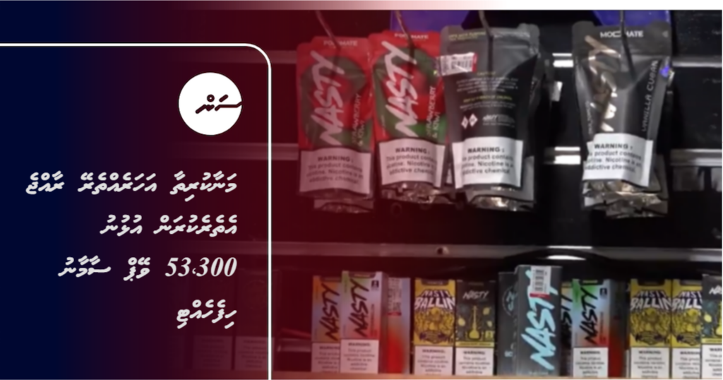ވޭޕްކުރުމާއި އެ ތަކެތި ގެންގުޅުން މަނާކުރިތާ އަހަރެއް ތެރޭގައި، ރާއްޖެ އެތެރެކުރަން އުޅުނު އެ ޒާތުގެ 53،000އަށް ވުރެ ގިނަ ތަކެތި ހިފަހައްޓާފައިވާ ކަމަށް ކަސްޓަމްސްއިން މިއަދު ބުނެފިއެވެ.