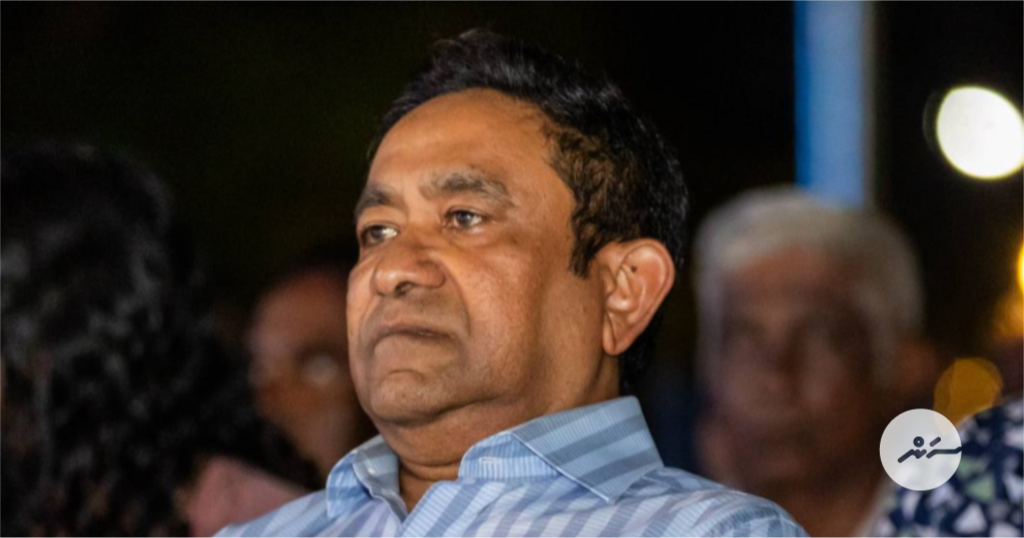21 ނޮވެމްބަރު 2025: ރައިޒް އަޕް ޔޫތުގެ ނަމުގައި ޕީއެންއެފުން ހުޅުމާލެ ފޭސް ދޭއްގައި ބޭއްވި ޖަލްސާގައި ކުރީގެ ރައީސް ޔާމީން -- ސަން ފޮޓޯ: މޫސާ ނަދީމް