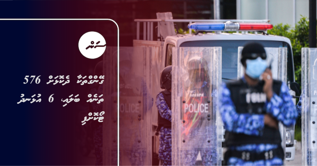 ގޭންގްތަކާ ދެކޮޅަށް ފުލުހުން ކުރަމުން އަންނަ މަސައްކަތުގެ ތެރެއިން ހަފުތާ ބަންދުގެ ތެރޭގައި 576 ތަނެއް ބަލައި ފާސްކޮށް، ހަ އުޅަނދު ޓޯކޮށްފައިވާ ކަމަށް ފުލުހުން މިއަދު ބުނެފިއެވެ.