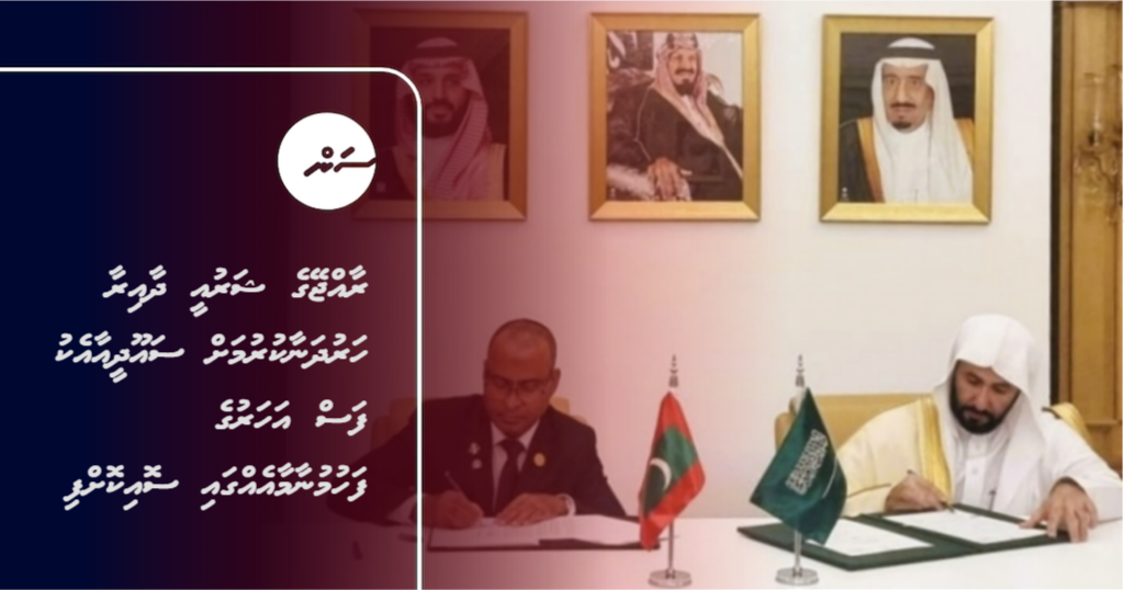 ރާއްޖޭގެ ޝަރުއީ ނިޒާމާއި އިދާރީ އުސޫލުތަކާއި ގާނޫނީ އުސޫލުތައް ހަރުދަނާކުރުމަށް އެއްބާރުލުން ދިނުން އިތުރުކުރުމަށް ރާއްޖޭގެ ސުޕްރީމް ކޯޓުން ސައޫދީ އަރަބިއްޔާގެ ޖަސްޓިސް މިނިސްޓްރީއާއެކު ފަސް އަހަރު ދުވަހުގެ ފަހުމުނާމާއެއްގައި ސޮއިކޮށްފިއެވެ.