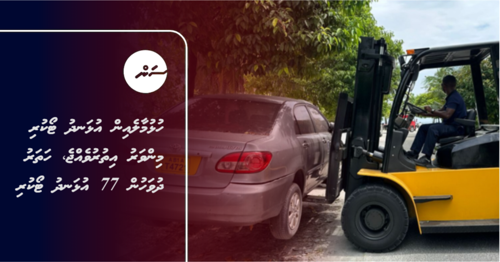 ގަވައިދާ ޚިލާފަށް ހުޅުމާލޭގައި ޕާކުކޮށްފައި ހުންނަ އުޅަނދުތައް ޓޯކުރި މިންވަރު އިތުރުވެ، ހަތަރު ދުވަހުން 77 އުޅަނދު ހުޅުމާލެއިން ޓޯކޮށްފައިވާ ކަމަށް ފުލުހުންގެ ތަފާސްހިސާބުތަކުން ދައްކައިފިއެވެ.