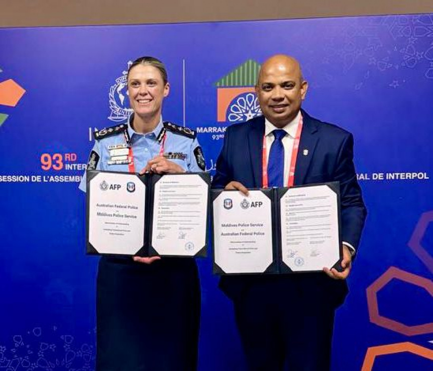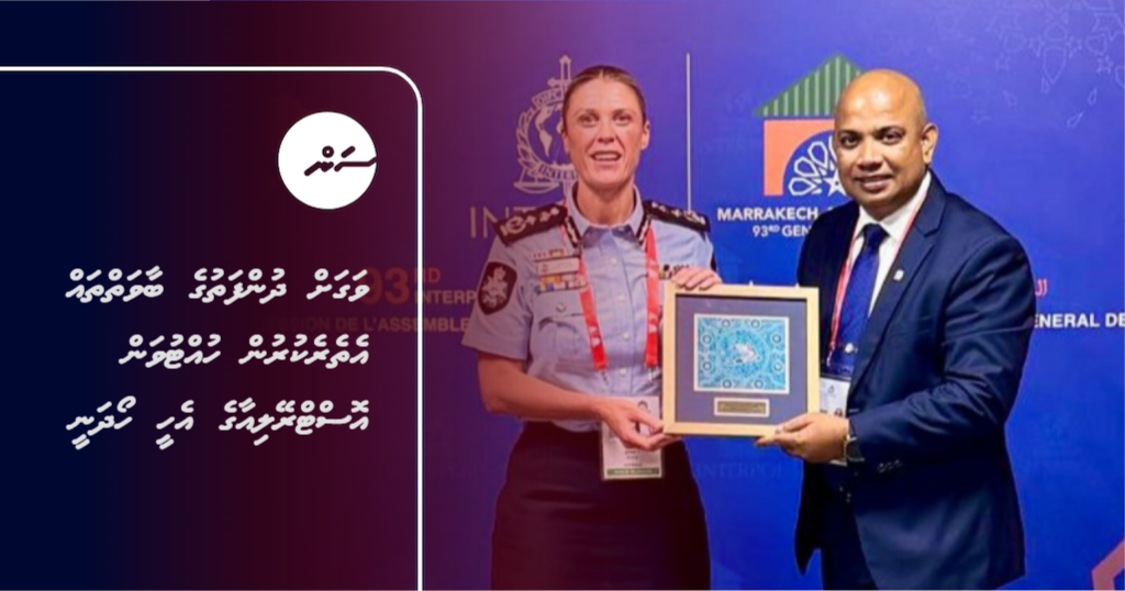 ފުލުހުން އިއްޔެ ބުނީ, މޮރޮކޯ މަރަކޭޝްގައި މިހާރު ކުރިއައްދާ 93 ވަނަ އިންޓަޕޯލް ޖެނެރަލް އެސެމްބްލީގެ ތެރެއިން, ރާއްޖޭގެ ކޮމިޝަނާ އޮފް ޕޮލިސް އިސްމާޢީލް ނަވީން ވަނީ އޮސްޓްރޭލިއަން ފެޑަރަލް ޕޮލިސް (އޭއެފްޕީ)ގެ ކޮމިޝަނަރު ކްރިސީ ބެރެޓްއާ ބައްދަލު ކުރައްވާފައި ކަމަށެވެ.