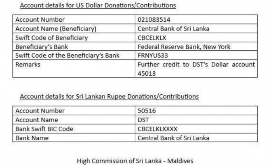 ހާލުގައި ޖެހިފައިވާ މީހުންނަށް ފައިސާގެ އެހީ ފޮނުވުމަށް ލަންކާ ސަރުކާރުން ވަނީ ޚާއްސަ އެކައުންޓުތަކެއްގެ ތަފުސީލު ދީފައެވެ.