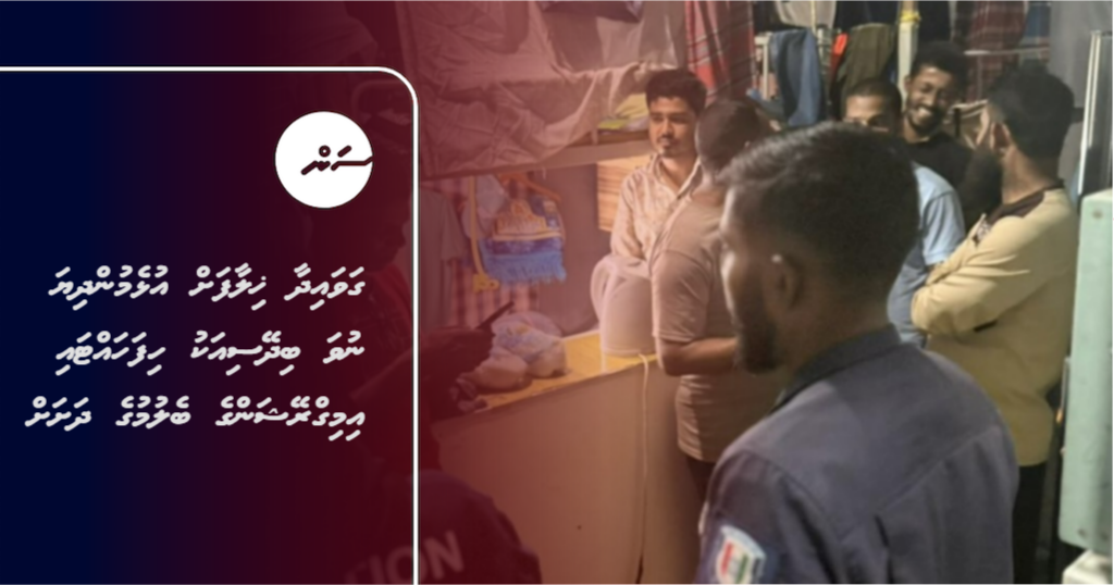 ސޯޝަލް މީޑިއާގައި ފުލުހުން ކުރި ޕޯސްޓެއްގައި ވަނީ، ގަވައިދާ ޚިލާފަށް އުޅޭ ބިދޭސީން ހޯދުމަށް ކުރަމުންދާ މަސައްކަތުގައި އިކޮނޮމިކް މިނިސްޓްރީއާއި އިމިގްރޭޝަނާއި ކަސްޓަމްސްއާއި ފުލުހުން ގުޅިގެން ހިންގި އޮޕަރޭޝަނެއްގައި ޖުމްލަ އެގާރަ ތަނެއް ބަލައި ފާސްކޮށްފައިވާ ކަމަށެވެ.