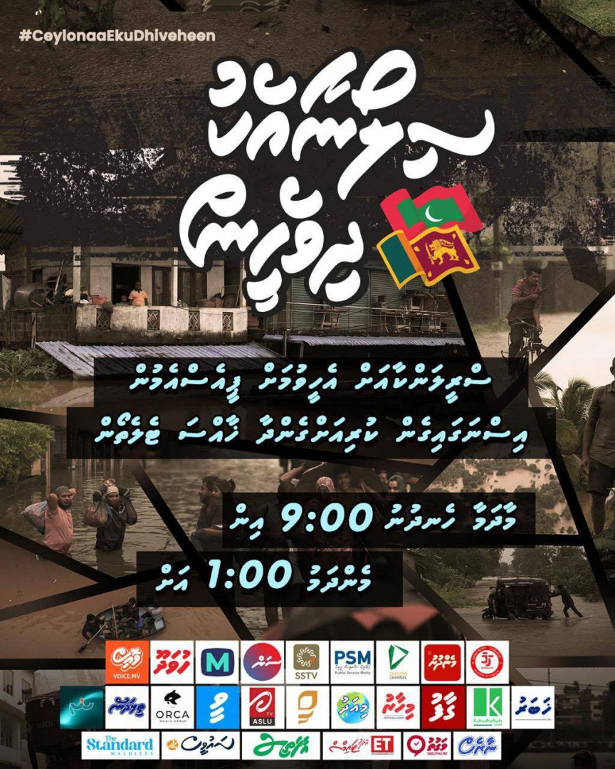 ތޫފާން 'ދީތުވާ'ގެ ސަބަބުން ސްރީ ލަންކާގައި ހާލުގައި ޖެހިފައިވާ މީހުންނަށް އެހީތެރިކަން ފޯރުކޮށްދިނުމުގެ ގޮތުން ޕަބްލިކް ސާވިސް މީޑިއާ (ޕީއެސްއެމް) އިސް ނަގައިގެން ރާއްޖޭގެ ގިނަ މީޑިއާތަކެއްގެ ބައިވެރިވުމާއެކު ބާއްވާ ޚާއްސަ ޓެެލެތޯނު "ސިލޯނާއެކު ދިވެހިން" ފަށައިފިއެވެ.