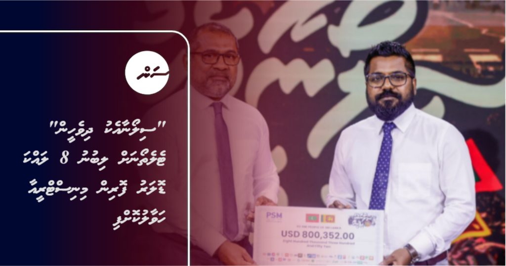 "ސިލޯނާއެކު ދިވެހީން"ގެ ނަމުގައި އަވައްޓެރި ސްރީ ލަންކާއަށް އެހީވުމުގެ ގޮތުން ކުރިއަށް ގެންދިޔަ ޚާއްސަ ޓެލެތޯނަށް ލިބުނު އަށް ލައްކަ ޑޮލަރު، ފޮރިން މިނިސްޓްރީއާ މިއަދު ހަވާލުކޮށްފިއެވެ.