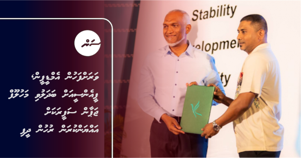'ދައުލަތުގެ މަގާމެއްގައި ޚިދުމަތްކުރަން' ކަމަށް ވިދާޅުވެ، އެމްޑީޕީން ވަކިވެވަޑައިގެން، ޕީއެންސީއަށް މަހުލޫފް ސޮއިކުރެއްވީ މިދިޔަ ނޮވެމްބަރު މަހުގެ 14 ވަނަ ދުވަހު އެ ޕާޓީން ބޭއްވި ބޮޑު ޖަލްސާގައެވެ.