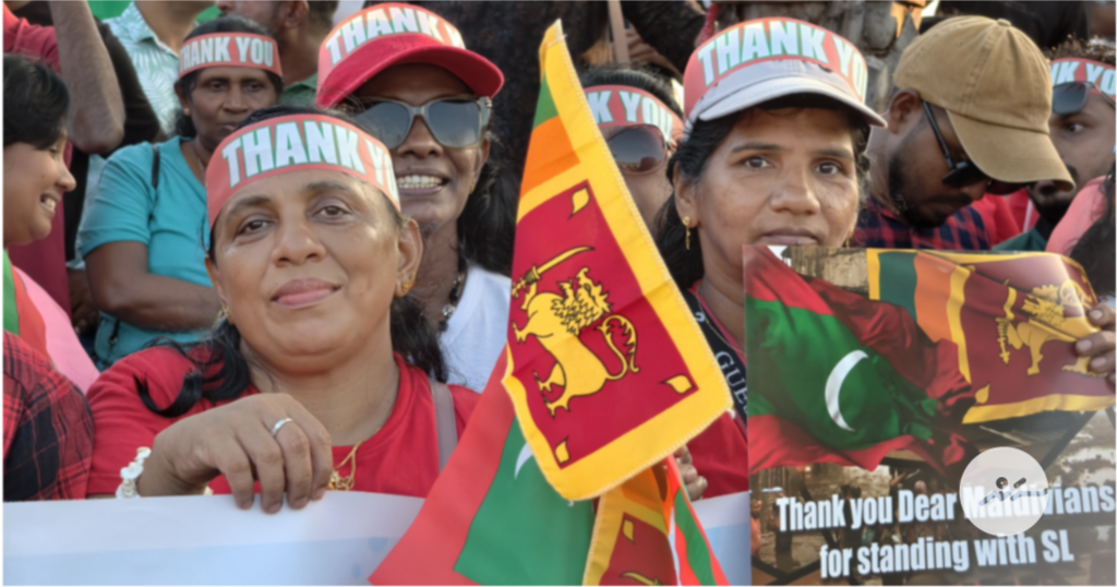 ދިވެހީންނަށް ޝުކުރު އަދާކުރުމުގެ ގޮތުން ލަންކާ ރައްޔިތުން ބޭއްވި އެއްވުމުގެ ތެރެއިން -- ސަން ފޮޓޯ: އަހްމަދު އިޔާދު