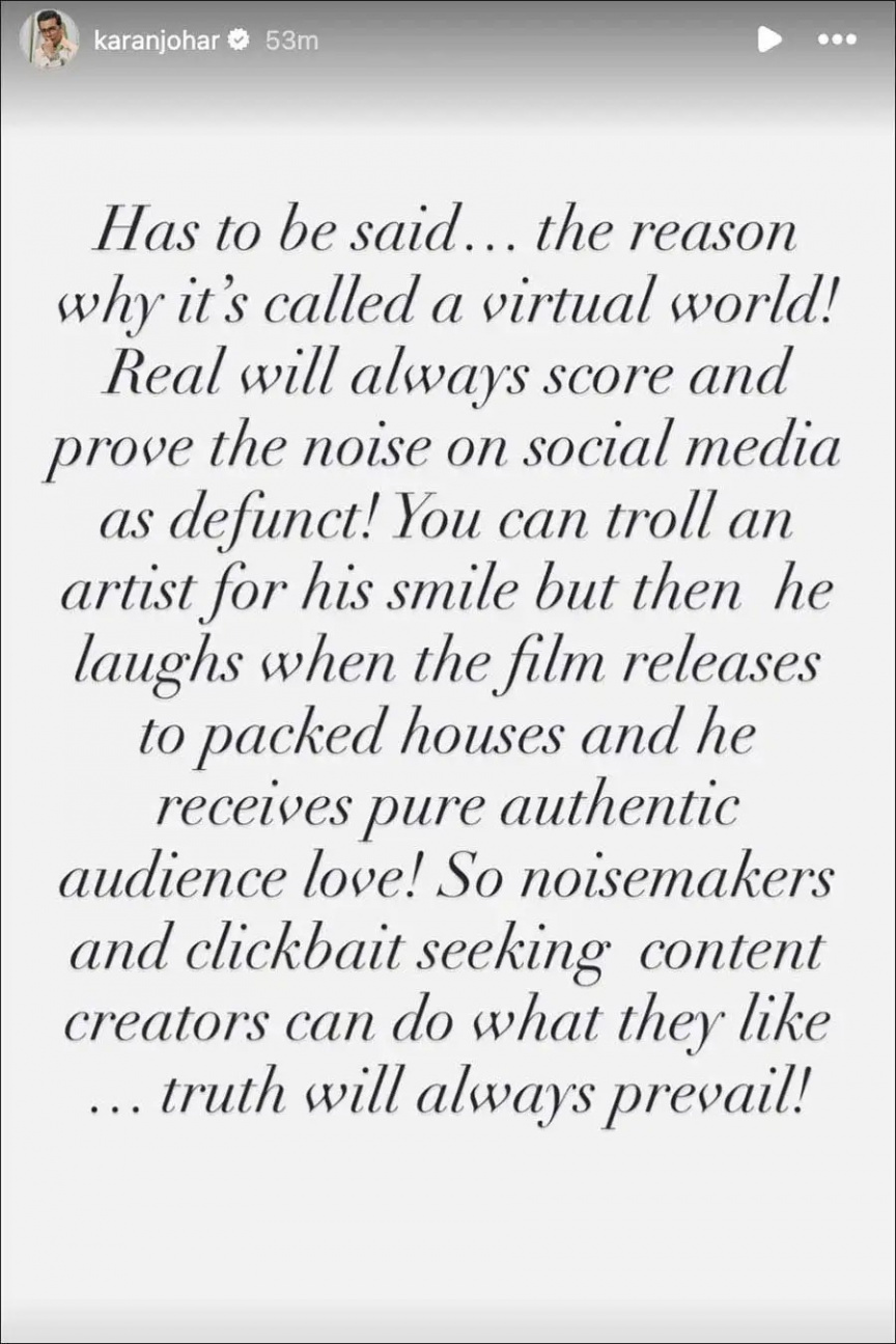 މި ކަމާ ގުޅިގެން ވަރުންގެ ދިފާއުގައި ސޯޝަލް މީޑިއާގައި ކަރަން ކުރި ދިގު ޕޯސްޓުގައި ބުނެފައިވަނީ ވަރުންގެ ހިނިތުންވުމަށް ބަޔަކުމީހުން މަލާމާތްކުރިއިރު ފިލްމު "ބޯޑާ 2" ހޯދަމުން އަންނަ ކާމިޔާބީއާ ގުޅިގެން ވަރުން ހަގީގަތުގައި ވެސް މިއަދު ހުރީ ހެވިފައި ކަމަށެވެ.