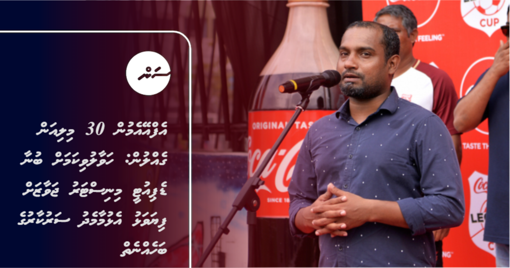 ރާއްޖޭގައި ބައިނަލްއަގުވާމީ ފުޓްބޯޅަ ފެސިލިޓީއެއް ގާއިމްކުރުމަށް ސަރުކާރުން އިއުލާން ކުރި މަޝްރޫއަށް، ފުޓްބޯޅަ އެސޯސިއޭޝަން (އެފްއޭއެމް)އަށް ހުޅުމާލޭން ދިން ބިން އެކި ފަރާތްތަކަށް ކުއްޔަން ދީގެން ލިބެން ޖެހޭ ފައިސާގެ ތެރެއިން ގާތްގަނޑަކަށް 30 މިލިއަން ރުފިޔާ ގެއްލިފައިވާ މައްސަލައިގައި ޔޫތު މިނިސްޓްރީގެ ޑެޕިއުޓީ މިނިސްޓަރު ޙުސައިން ޖަވާޒަށް ފިޔަވަޅު އެޅިކަމަށް، ނުވަތަ ނާޅާކަމަށް ސަރުކާރުން ނުބުންޏެވެ.