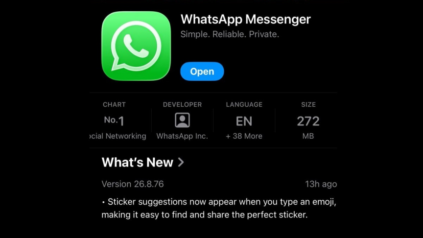މެޓާގެ މި މެސެޖިންގ ޕްލެޓްފޯމުން ވަނީ އައި.އޯ.އެސް އެޕް ވާޝަން 26.8.76 އަށް އަޕްޑޭޓްކޮށްފައެވެ. މި އަޕްޑޭޓުގައި ހިމެނޭ މި އާ ފަންކްޝަނަލިޓީގެ ސަބަބުން، އިމޯޖީ ޓައިޕްކުރާއިރު، ޗެޓް ބާގައި އެއާ ގުޅުންހުރި ސްޓިކާތައް ދައްކާނެއެވެ. މީގެ ސަބަބުން ވާހަކަ ދައްކާއިރު ގިނަ ވަގުތު ސަލާމަތްކުރެވޭނެ ކަމަށް ވަޓްސްއެޕް އިން ބުނެއެވެ.