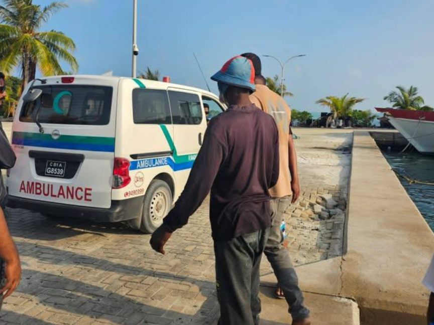 ގެއްލިގެން ހޯދަނިކޮށް ފެނުނު އިޤްބާލު ވާދޫއަށް ގެންގޮސް އެމްބިއުލާންސަށް އަރުވަނީ-- ސަން ފޮޓޯ: ކިޔުންތެރިއެއް