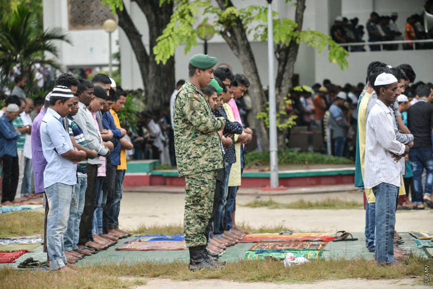 މީހުންތަކެއް ނަމާދު ކުރަނީ -- ސަން ފޮޓޯ/ ފަޔާޒު މޫސާ