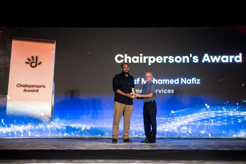 ދިރާގުން ދޭ އެންމެ ޝަރަފުވެރި އެވޯޑު ކަމުގައިވާ 'ޗެއާޕާސަންސް އެވޯޑު' ހާސިލުކޮށްފައި ވަނީ ކޮންސިއުމާ ސާވިސަސްގެ ޚަލަފް މުޙައްމަދު ނާފިޒެވެ. އެގޮތުން ދިރާގު އެޕްރެންޓިސްޝިޕް ޕްރޮގްރާމުން މަސައްކަތުގެ މައިދާނަށް ނުކުތް ޚަލަފަކީ، މިއަދު އެ ކުންފުނީގައި ހީވާގި ކަމާއެކު މަސައްކަތްކުރަމުންދާ ފާހަގަކޮށްލެވޭ އަދި ނަތީޖާ ނެރޭ މުވައްޒަފެއް ކަމަށް ދިރާގުން ބުންޏެވެ. އަދި ޚަލަފް ވަނީ ބާޒާރުގެ ބޭނުންތަކަށް އަވަހަށް އިޖާބަދީ، މި މަސައްކަތްތައް އިތުރަށް ހަލުއިކުރެވޭނެ ޕްލެޓްފޯމެއް ތަސައްވުރުކޮށް، އެ ޕްލެޓްފޯމް ގާއިމްކުރުމުގައި މުހިންމު ދައުރެއް އަދާކޮށް، އެ ޕްލެޓްފޯމްގެ އެހީގައި ކުންފުންޏައް އިތުރު ފައިދާތައް ހޯދައިދީފައި ކަމަށް ދިރާގުން ބުންޏެވެ.