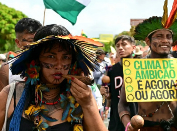 ކޮޕް30 ސަމިޓްގެ ބޭރުގައި އެތައް ބަޔަކު މުޒާހަރާ ކުރަނީ